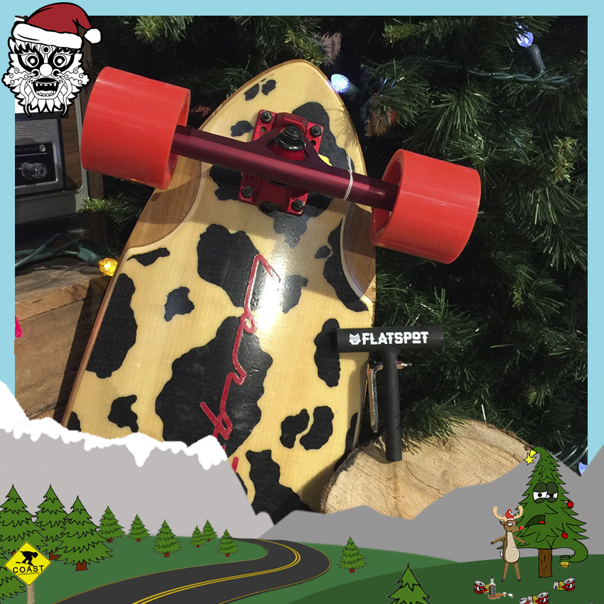 And don’t forget we’re also including an entry to our Custom Flatspot Camping Knife Giveaway with every order placed during the month of December. We’ve hand made the handle of this knife from recycled skateboards and is a one of a kind item any skateboarder would be stoked to have!