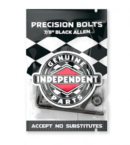 Independent Genuine Parts hardware is specified to the highest standards. Each set features cross logo heads, full size nylon lock nuts, full size bolt heads with Cross insignia, and extended unthreaded shafts for minimal board damage. Allen Head available in black 7/8 and & 1″. Updated packaging features 100% recyclable bolt bags.