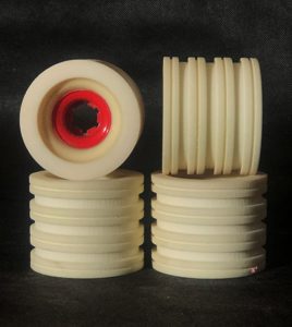 Each wheel is checked for solid cores, good urethane, and no flatspots and then trimmed and grooved. These cuts give wheels the added edges and channels necessary to flex, grip and push out water to help you hold lines and maintain controlled slides in ways you’d never be able with standard factory wheels.