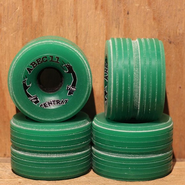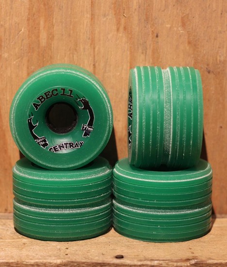 Flatspot rain grooved wheels are upcycled from lightly used scrubbed wheels that are less than ideal for gripping and sliding clean lines in the dry, but perfect for being grooved for the wet.