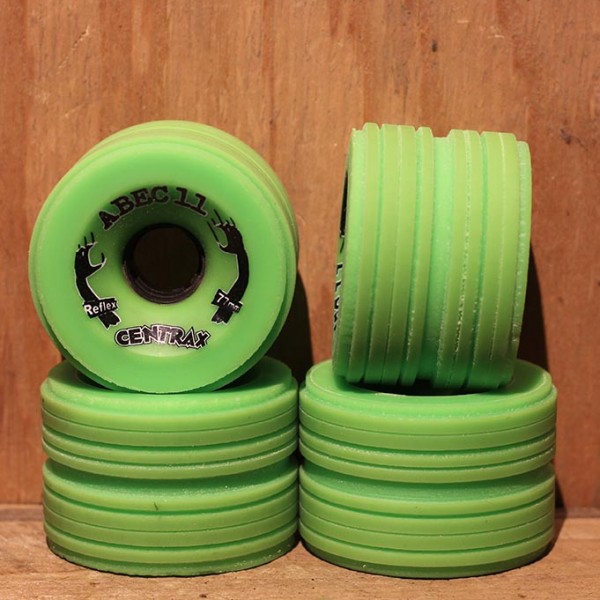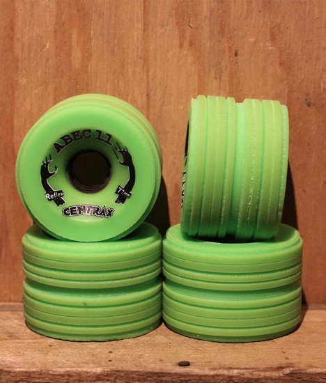 Flatspot rain grooved wheels are upcycled from lightly used scrubbed wheels that are less than ideal for gripping and sliding clean lines in the dry, but perfect for being grooved for the wet.