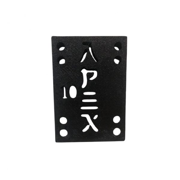 Add an Apex Prototyping angled or wedge riser pad to adjust the angle or wedging of your trucks. Apex riser pads are 3D printed out of high quality materials and come in 90a and 85a urethane or hard plastic in both flat and angled varieties. Apex angled risers come in 3.5, 5, 8, and 10 degree angles.
