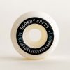 Boardy Cakes “Round Ups” are an experiment in time and space, testing our perception of reality. They have a hardness of 99.9a and measure 49.99mm x 31.5mm wide with a nominal riding surface of 13.5mm.
