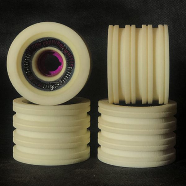 Each wheel is checked for solid cores, good urethane, and no flatspots and then trimmed and grooved. These cuts give wheels the added edges and channels necessary to flex, grip and push out water to help you hold lines and maintain controlled slides in ways you’d never be able with standard factory wheels.