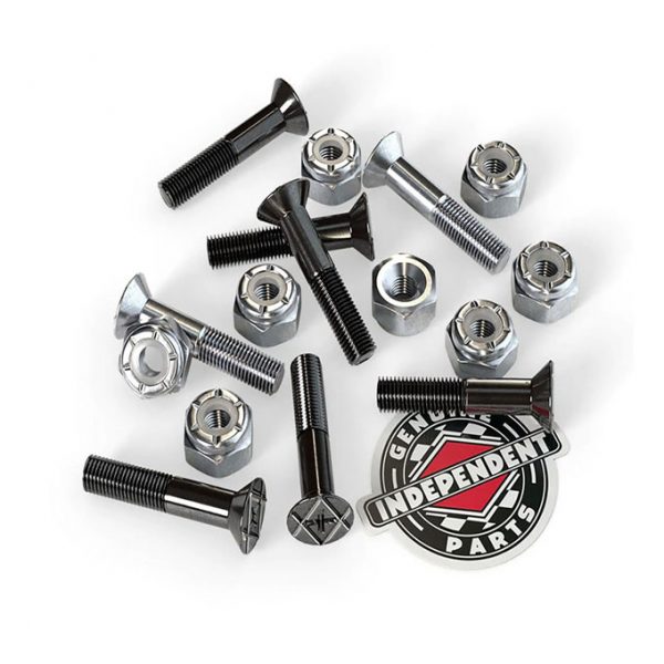 Independent Genuine Parts hardware is specified to the highest standards. Each set contains 6 black bolts and 2 red bolts. Genuine Parts Phillips hardware features cross logo heads, full size nylon lock nuts, full size bolt heads with Cross insignia, and extended unthreaded shafts for minimal board damage. Available in black, silver, gold and red. 1.25″ and & 1.5″. Updated packaging features 100% recyclable bolt bags.