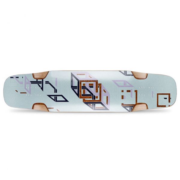 The Tesseract II is your portal to high-performance freestyle and freeride. Its micro-drop platform locks you in for an immersive connection, while symmetrical double kicks defy gravity, opening up a universe of possibilities. Built with six plies of long-grain maple and triaxial fiberglass, it’s engineered for perfect stellar stiffness and explosive pop. Laser-cut 50-grit griptape and machined wheel wells keep you grounded, while the photochromic graphic hints at new dimensions in your skateboard progression.