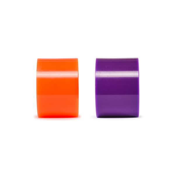 The Orangatang Kegel is your ticket to high-speed steamroller action and the obliteration of a variety of small mammals. The large 80mm diameter generates high roll speeds while a moderate width of 56 mm allows for a versatile balance of traction and slide response. A cantilevered outer lip with a straight profile is pliable enough to hug the road for grip while also ensuring consistent performance as the wheel wears. The shorter inner lip features a subtle inward bevel for race-worthy traction and predictable drifts. A fully-exposed 46mm core with a deep “valley”-shaped cross section reduces weight while providing good acceleration, lots of momentum, and crisp slides.