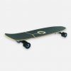 Our TKP setup with Stylus Trucks is more smooth turning and sort of more of a classic skateboard feel. The Stylus are excellent both in turn quality as well as stability, benefitting from the insert bushing that fits between the hanger and the axle to reduce slop. We add positive wedging to both the front and rear truck to minimize the possibility of wheelbite and effectively make the board act smaller with a tighter turning radius, but you get a larger standing platform out of the fitment. While this setup is shipped symmetrically, you can always turn the rear wedge around and then run this board asymmetrically, resulting in a more stable back end that you can pump off of a little more easily. The versatility of adding wedges can be a lot of fun. This setup makes the Fantail generally less aggressive but also more street friendly, and the axle position will position the tail as designed for street-style riding, with a steeper and therefore more powerful pop. This is our favorite setup for the Fantail Cruiser, as it makes the deck very comfortable and not overly reactive underfoot, although some riders may want the smaller turning radius of the RKP trucks.