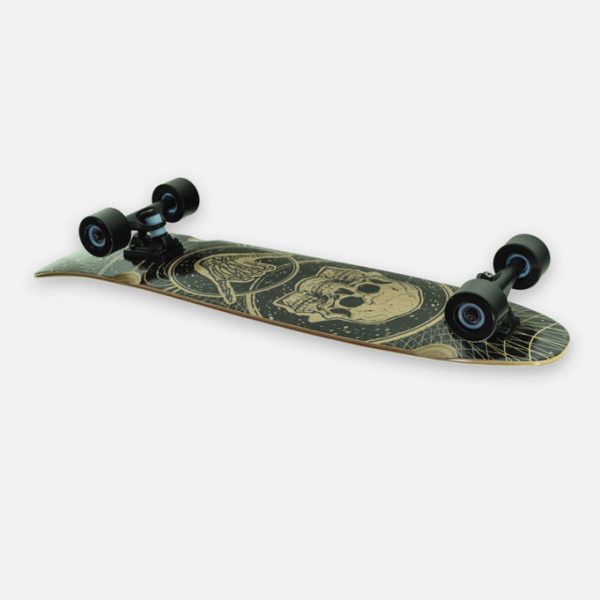 RKP trucks are precise, very turny, reactive, and grippy. If you want to maximize the grip on your Fantail Cruiser, choose the RKP setup. But know this: It is going to be exciting! You can always change bushings and settle the deck down if needed, or even go the opposite direction. RKP’s have the benefit of being taller trucks, making them generally more resistant to wheelbite and easier to fit larger wheels. RKPs are generally considered to be more stable at speed, but it’s important to consider that while the geometry is more stable inherently, the trucks are more turny. So with soft bushings, you may start off feeling less stable. Axle placement is more inward on an RKP, so this will effectively lengthen your kickball and change the kick angle to make ollies more easy but less powerful. Choose your angles based on your intended use. Our favorite is the 50/40 setup, which makes the board more unidirectional and gives lots of turn but settles down the back end a little bit. 50/50 will be super turny, and 40/40 might be better for riders looking to ride their deck faster and to treat it like more of a freeride deck.