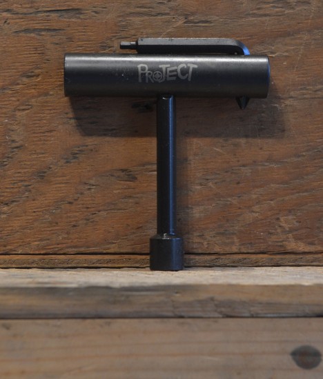 With a drilled out neck to accommodate long hardware and a steel construction. This tool will get at any nut and have the strength to wrench on the rusty ones.