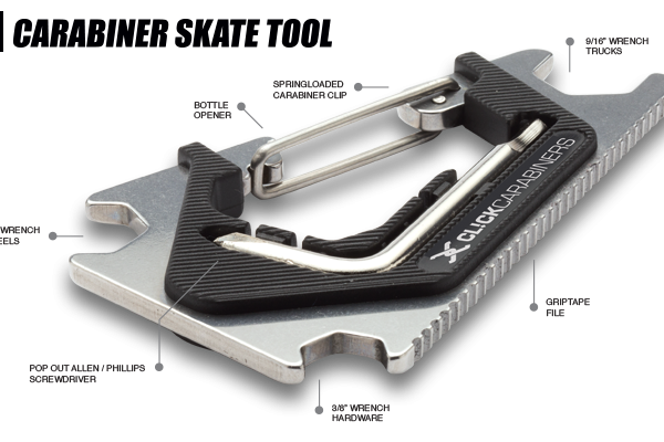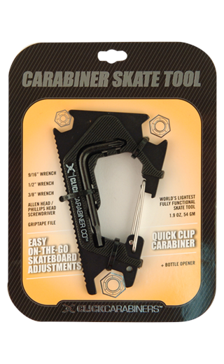 The Carabiner Skate Tool by Click Carabiners. Make quick and easy adjustments anytime, anywhere with the Carabiner Skate Tool. Keep your set-up tuned and tight… Stay Tuned!