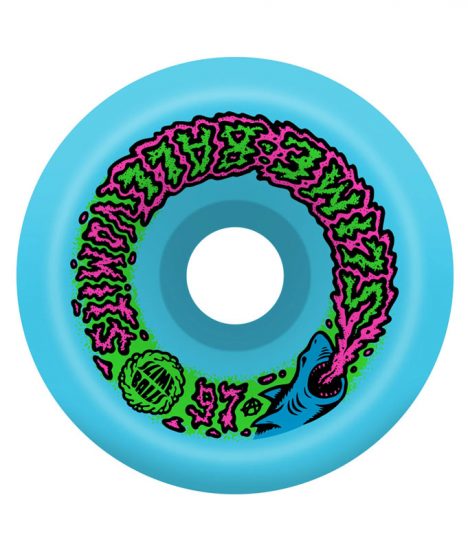 Slime Balls 60mm, 97a Shark Vomits featuring heritage artwork by Jim Phillips Studios on blue 97a urethane in the OG Vomits shape.