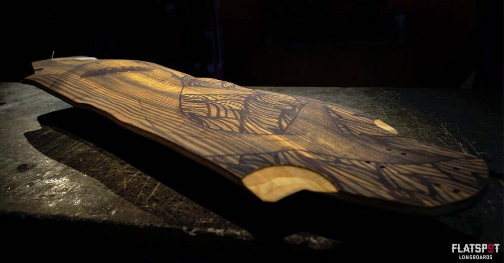 As you will see, whoever is designing boards over at root has a serious appreciation for wood grains. Each board has a unique veneer with prominent and striking grain patters. Not two boards are alike. We were lucky enough to get boards from their Burnt Series. It would be wrong to say that these boards don’t have a graphic, burning the veneer brings out the colors and grains.