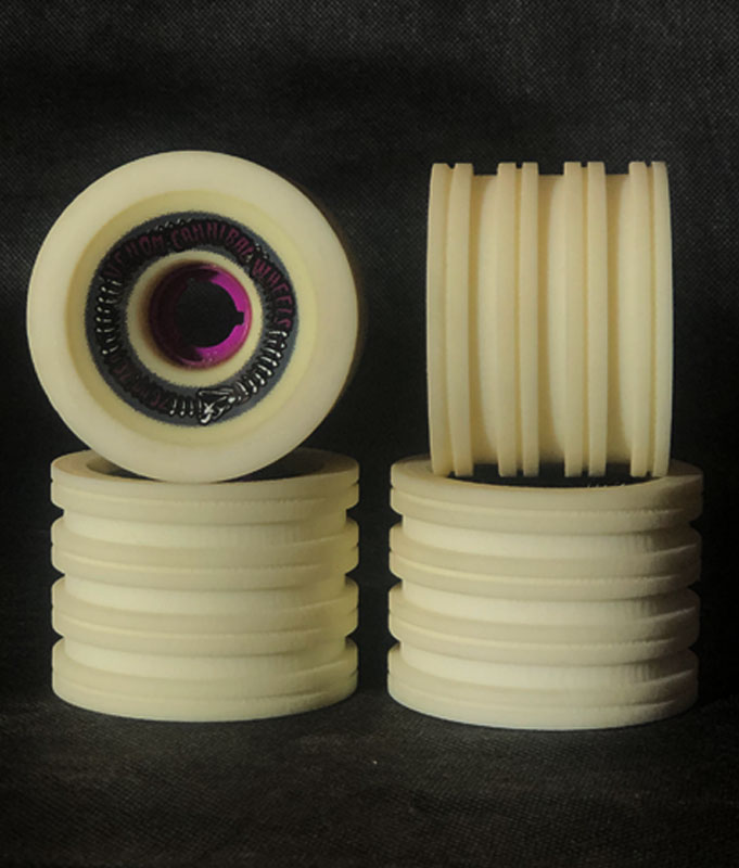 Each wheel is checked for solid cores, good urethane, and no flatspots and then trimmed and grooved. These cuts give wheels the added edges and channels necessary to flex, grip and push out water to help you hold lines and maintain controlled slides in ways you’d never be able with standard factory wheels.